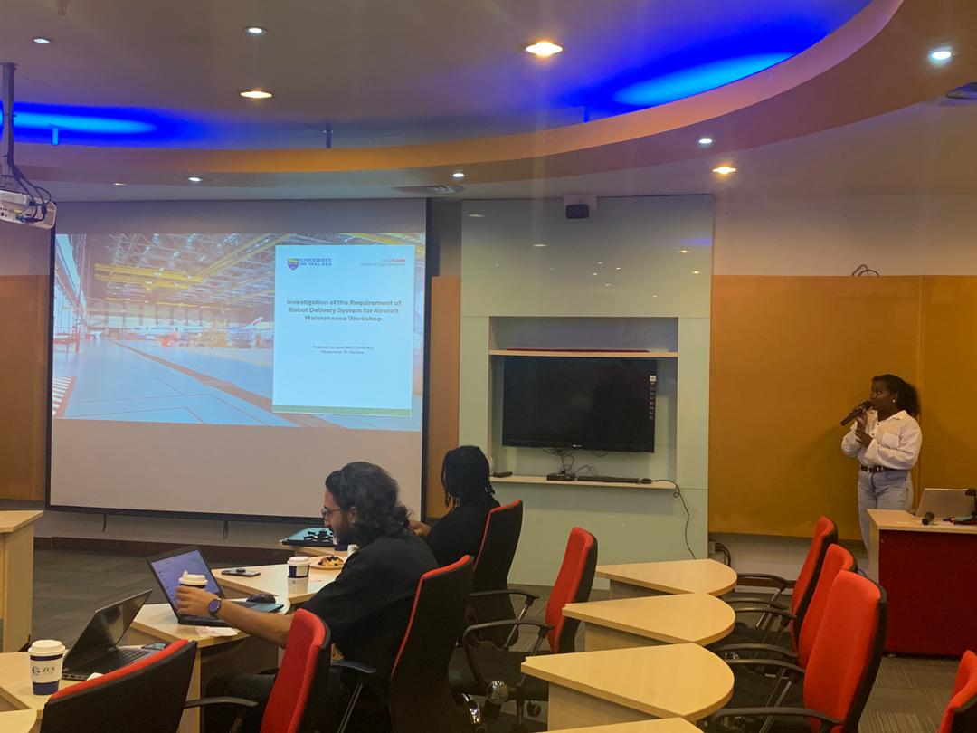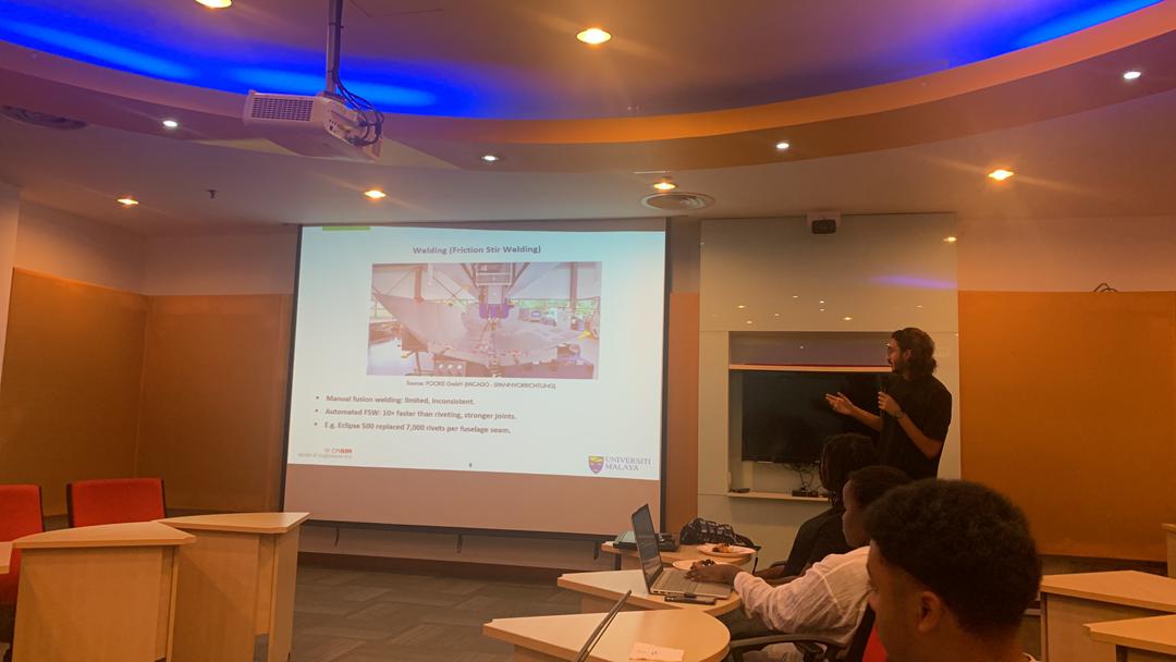 During the seminar, the interns presented projects covering drone-based inspection, welding strategies for aerospace structures, hydrogen technology applications, and robotic transportation systems for MRO logistics. Their work was guided by University Malaya's academics, combining hands-on research with insights into industry needs.